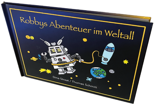 Robbys Abenteuer im Weltall, so lautet die erste Geschichte des abenteuerlustigen Roboters.